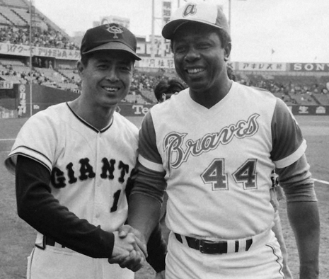 野球人気が最高潮にあったあの頃,数年おきに開催される日米野球は,子どもたちにとって大きな楽しみでした。テレビの前で固唾をのんで応援したあの時間は,今も鮮明に思い出されます。中でも昭和49年,ハンク・アーロンと王貞治によるホームラン競争は,今でも記憶に焼き付いています。テレビの前で手に汗を握り,その一打,一打を見守りました。