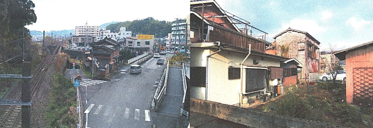 隣家のご主人に,妻が一歳の頃の買い物籠を手にした姿が写っている一枚の古い写真(写真①)を見せると,その場所は駅前だったと教えてくださいました。さらに,かつて佐世保市と合併する以前には,この地域には多くの商店街が立ち並び,活気にあふれていたという話も聞かせてくださいました。妻もまた,その話を聞きながら,遠い記憶が蘇ったように,かつて住んでいた家の隣近所には雑貨屋があり,店内には「所狭し」と茶碗やお皿が並べられていたと回想し始めました。