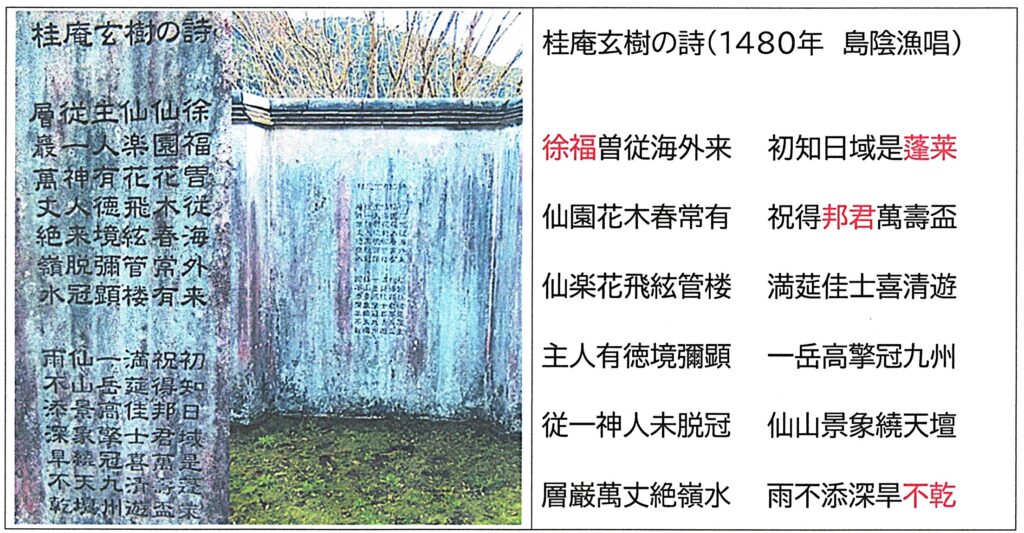 | ① 徐福曽従海外来 初知日域是蓬莱 | ・徐福は海の彼方からやって来て,初めてこの地が仙人の住む蓬莱(理想郷)であると知った。 |