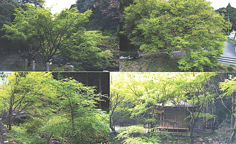 | この時期の新緑に触れると,かつて初夏に京都を旅したときのことを思い出します。下鴨神社や東福寺,建仁寺,北野天満宮といった神社仏閣に,青モミジがよく映え,とても美しく写真を何枚も撮りました。青紅葉は清涼感をたたえ,あたり一面に爽やかな緑の世界を広げていました。歴史ある社寺や庭園がその若葉に彩られる景色は,まさに京都ならではの風情だと感じたものです。 古い日本語では,「青」という言葉が緑を含む若くみずみずしい様子を表していたそうです。芽吹いた草木が一斉に広がる新緑の青モミジには,生命の息吹と力強さが感じられ,季節の移ろいの美しさを見ることができます。 |