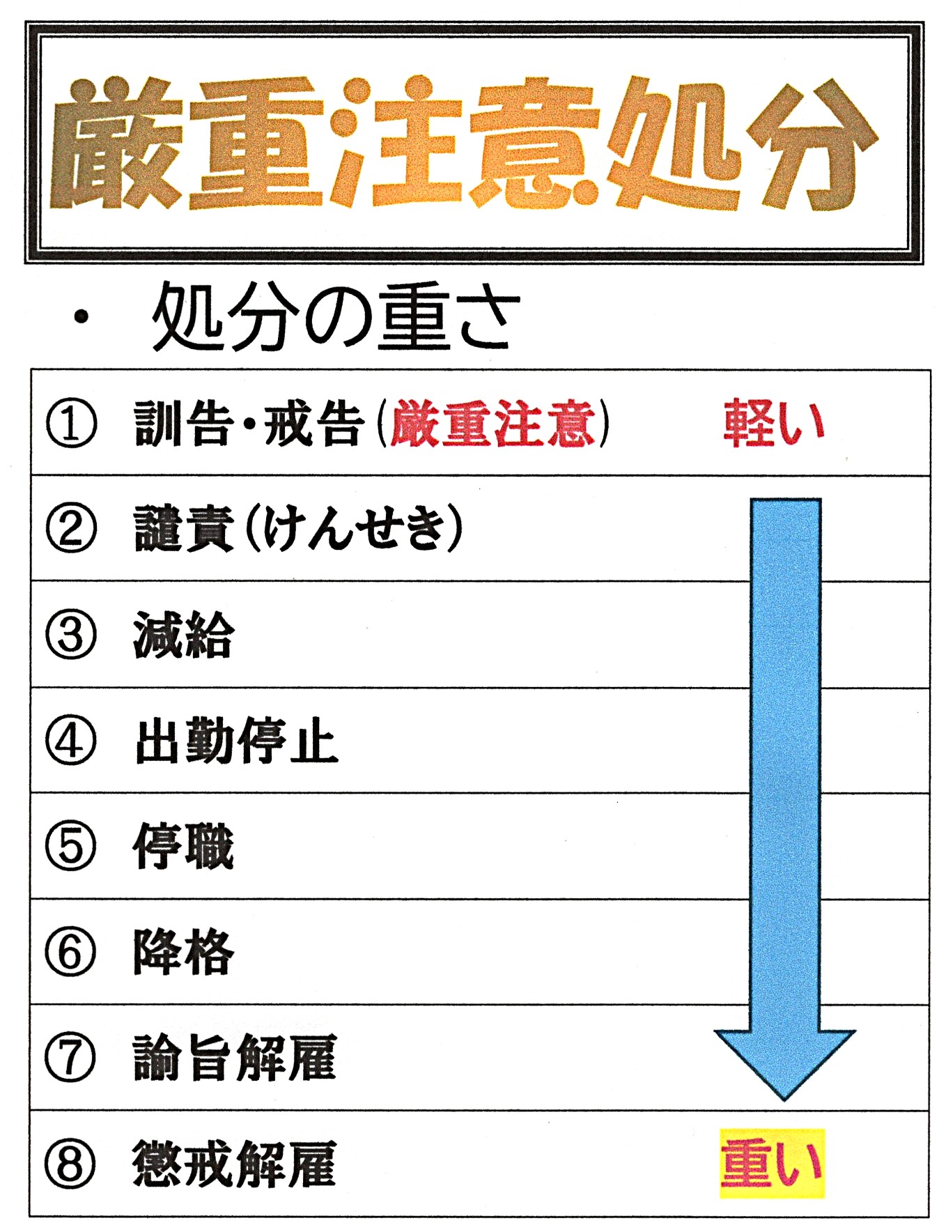 そこで,この厳重注意処分とはどの程度の処分なのでしょうか。
