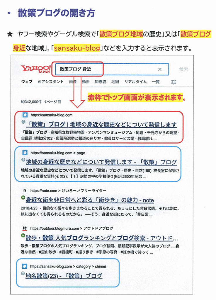「サンサク ブログ」「散策ブログ身近」「sansaku blog」などで上位検索ができます。