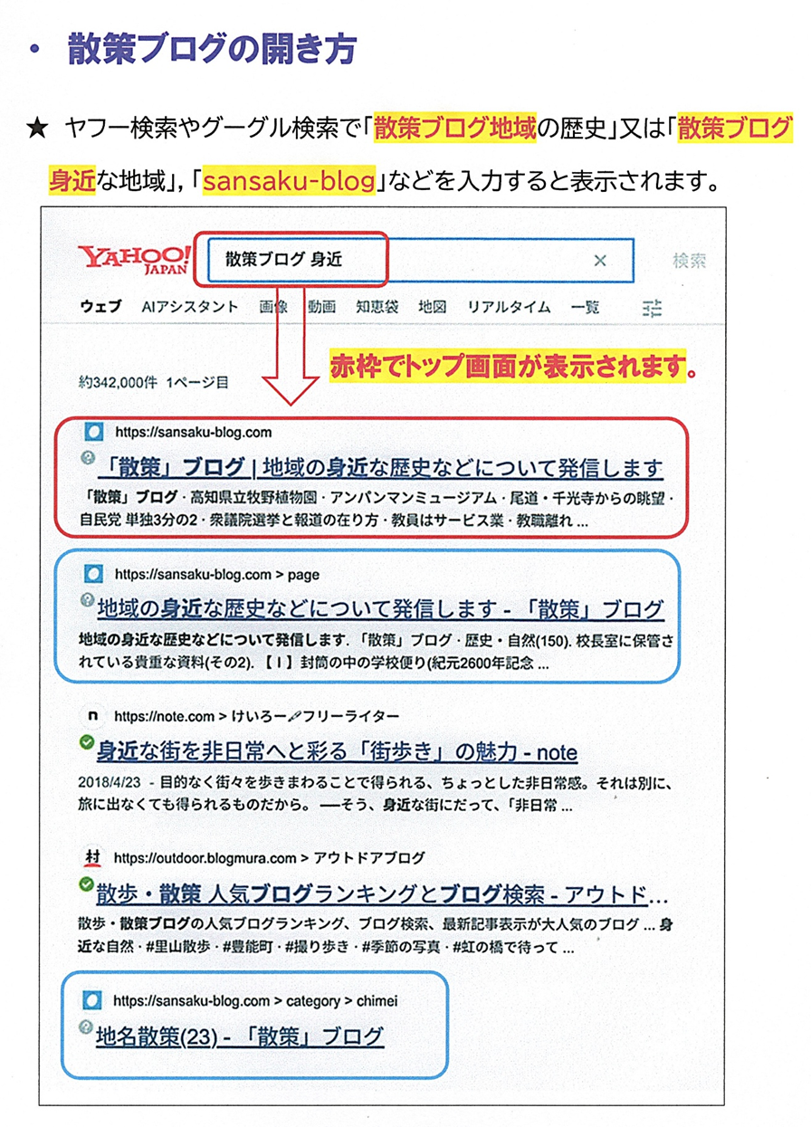 これまでのように「散策ブログ」では表示されなくなりました。簡単な検索方法をお知らせいたします。今後ともよろしくお願いいたします。