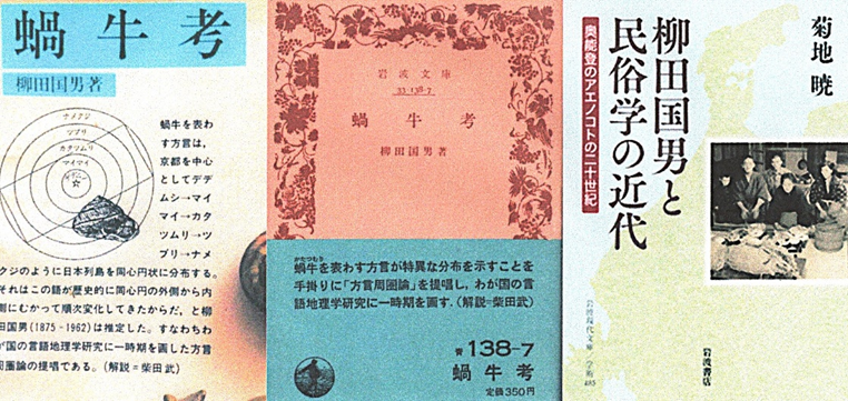 このような方言の広がり「方言周圏論」を提唱したのが遠野物語の作者として知られる民俗学者の柳田国男なのです。古い京都で生まれた言葉や文化が,周辺地域へ同心円状に広がっていき,同じ言葉が遠く離れた地域に残っているという考え方です。