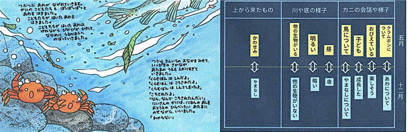 「水の中で生きている蟹たちは,クラムボンの出現に感謝しているように思いました。クラムボンが現れる世界は,生き物が一緒に平和に生きていける世界なのではないでしょうか。だから,クラムボンのことをあまり気にしないことが大切なのだと思います。しかし,弱肉強食の世界でもあるので,クラムボンを気にしすぎると,水の中の魚や生き物たちが生きにくい世界になってしまうのではないかと思いました」と読後の感想を言えるまでになってきます。