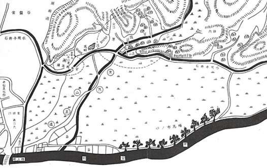 ・ 伊敷村永吉・原良付近の枦の並木(文政前後の薩藩沿革地図)