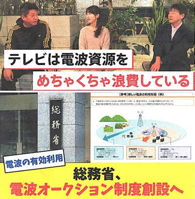 これまでも取り上げてきましたが,多くの自由主義国のように,「電波オークション」を導入し,それこそ各社が自由に報道すればいいのです。問題なのは,公共の電波を使って,旧来のメディアが足並みを揃えて一つの論調を押し付け,国民の「知る権利」を狭めてしまっていることです。