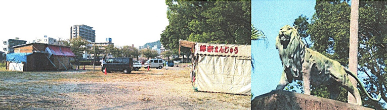 木市は大正時代から国道10号線沿いの鶴丸城堀池横の「館(やかた)馬場」で行われていたそうです。昭和40年3月に山下町の鶴丸城堀池の横を通る国道10号線の交通量が増えたため甲突川沿いの市民広場に移すことになったそうです。