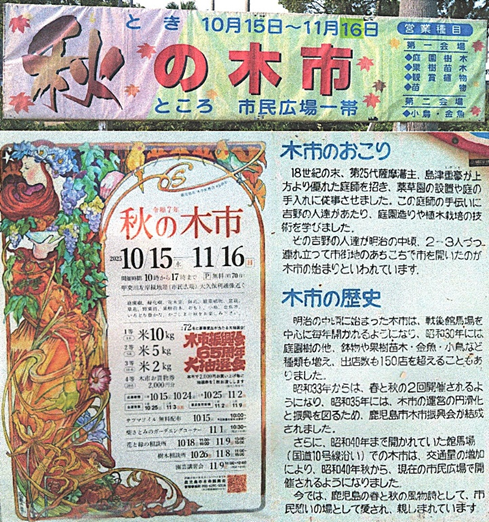 木市のある風景が,この先も変わらず残っていってほしいと願っています。最近は,タラの芽やライチの木,姫リンゴなど新しい品種の樹木も増えたり,主催者側もいろいろなイベントを計画したりしているようです。みんなで応援しましょう。